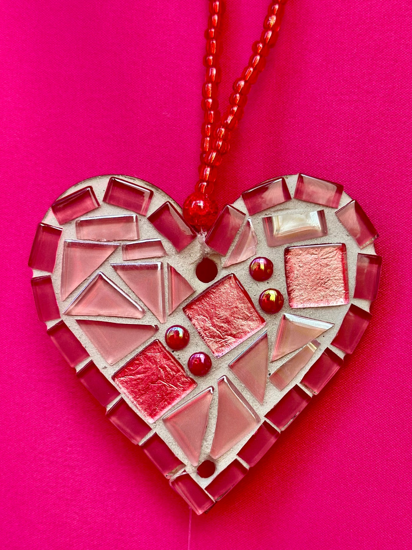 Mosaic your own stunning beaded hanging heart with your Galantine! Champaign, treats and our grouting service included.